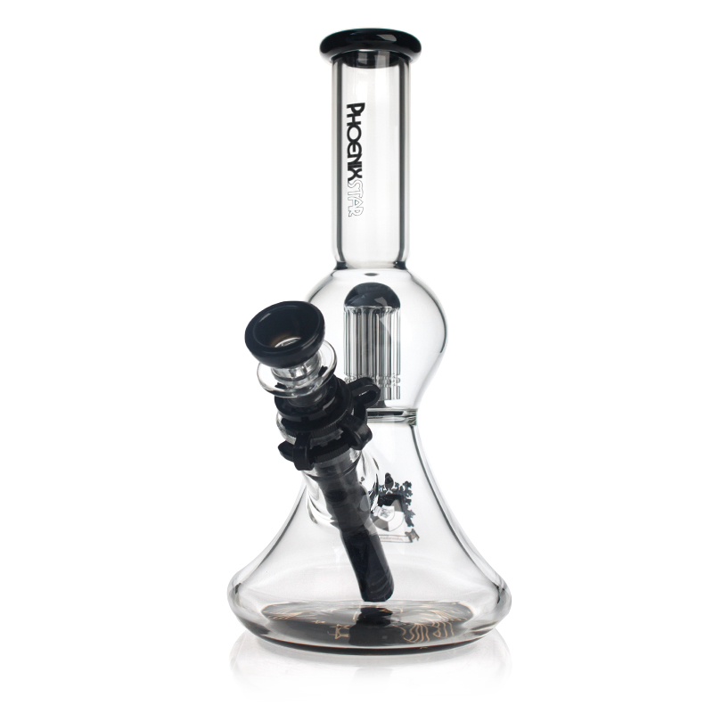 Phoenix Star Glass Tree Perc Beaker Bong features an 8-arm tree perc, which effectively filters the smoke. It comes with a diamond beaker base and is made from high-quality borosilicate glass, ensuring a pure taste for your herbs. New Design by Phoenixstar Team