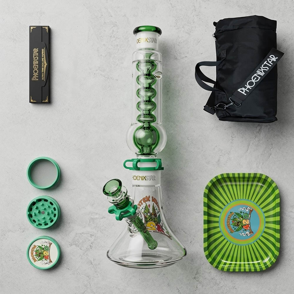 What's in the Box113" Freezable Coil Glycerin Bong2Custom Crossbody Protective Travel Bag3Metal Rolling Tray (7" x 5.5")4100% Biodegradable Eco-Grinder5Premium Rolling Paper Booklet w/ TipsFrequently Asked QuestionsHow long should I freeze the glycerin top?