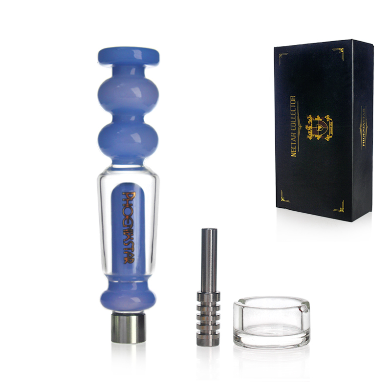 DescriptionPhoenix Star Nectar Collector Straw Kit comes complete with a glass bubbler, titanium nail, wax dish, and all elegantly presented in a gift box. It's got nearly everything you need fordry herbsconcentrate consumption. The nectar collector bubbler, crafted from High-quality Borosilicate Glass, lets you add water to cool and filter the hot vapor, reducing throat irritation for a more pleasant dabbing experience. At just 5.8 inches, this small dab bubbler is portable, perfect for travel and on-the-go use. The dab straw kit features a removable titanium nail, famed for its high strength and durability, ensuring even heating for a consistent smoking experience.
