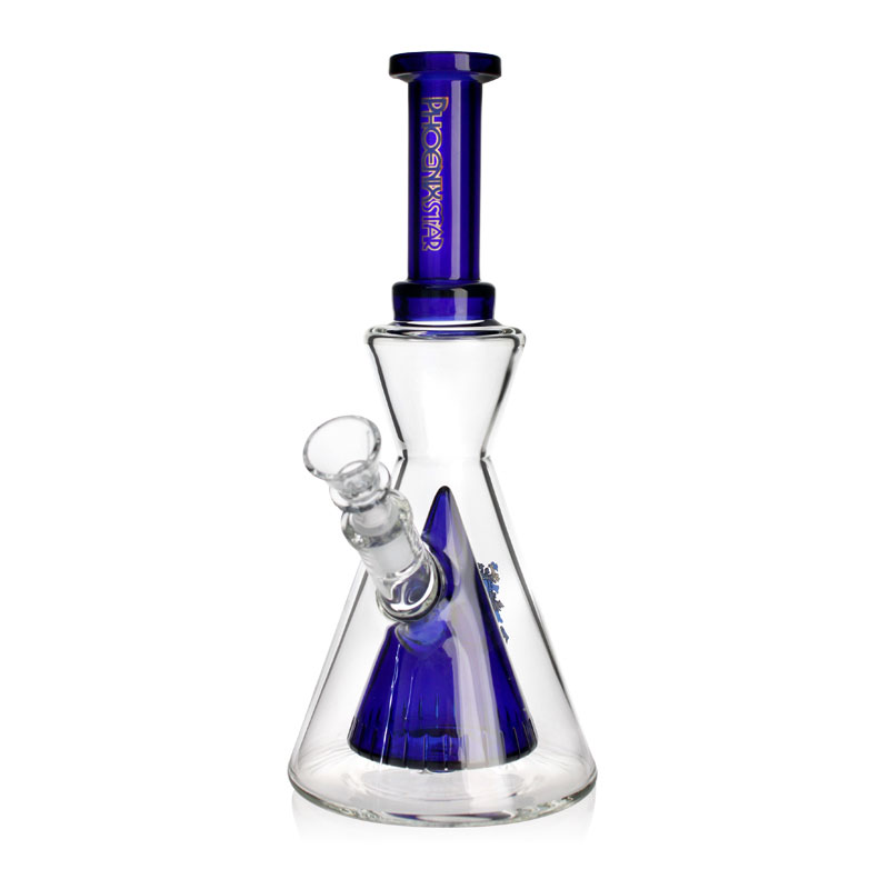 Phoenix Star Glass 10 Inches Percolator Bong PHX957 is designed with a sturdy beaker base for stability. this bong features a unique pyramid percolator with over 20 slits. For the best performance, be sure to fill the bong with water to submerge the slits, optimizing filtration. Available in green, blue, and black, this high-quality glass bong is built to last. The iconic PhoenixStar logo and innovative design make it a must-have for any smoker looking for top-tier performance and style.