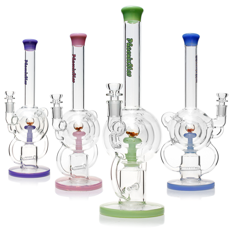 DescriptionPhoenix Star 14 Inches Percolator Bong with Triple Layers of Glass Ball PHX641 is made of premium Boros glass for long-term use. The glass bong features an inline diffused perc on the bottom and a showerhead perc in the triple layers of glass ball. Not only beautiful in appearance but also powerful in function. This perc bong is outfitted with seveal recycler tubes, the water cycles through the ball and tubes for continuous filtration and diffusion. You can enjoy the smoothest hits via this phoenix star recycler percolator bong.