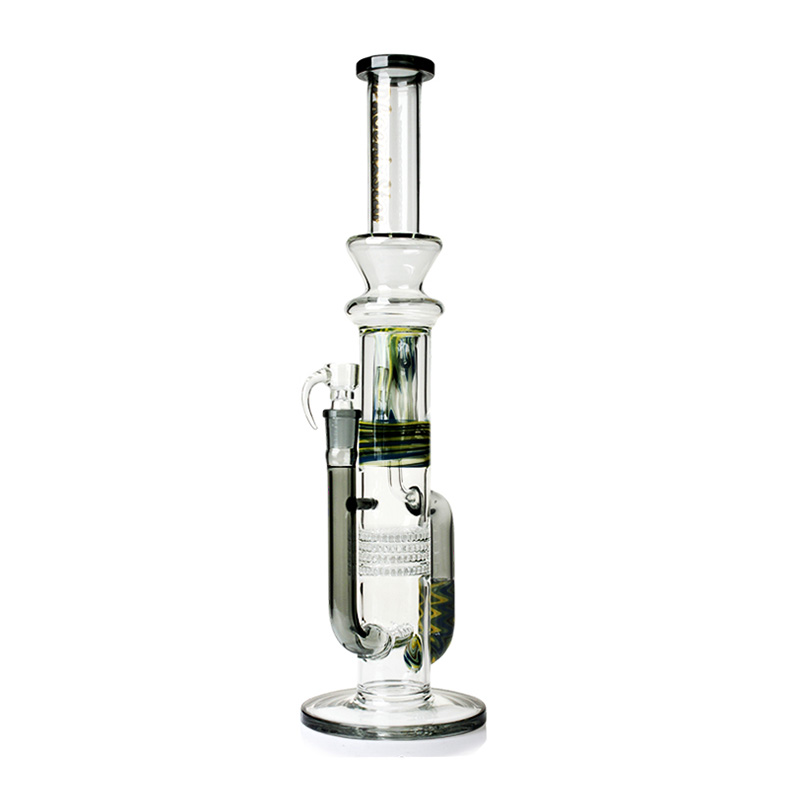 Phoenix Star 18 Inches American Color Rod Percolator Bong PHX531 is an 18 inches tall hand-blown glass bong. Decorated with American Northstar Glass Rod, the big size glass pipe features a recycler design for continuous filtration and airflow through flowing water to offer smokers the smoothest hits. The recycler pipe is equipped with four layers of honeycomb percs and a inline diffuser perc with eight slits in the tube for extreme percolation & filtration every time. The smoke passes through the undetached downstem to the inline perc to be diffused for the first filtration. And its four-layer honeycomb percs with dozens of small holes are designed for the second filtration. The bubbling water from the transparent glass will let you be relaxed.