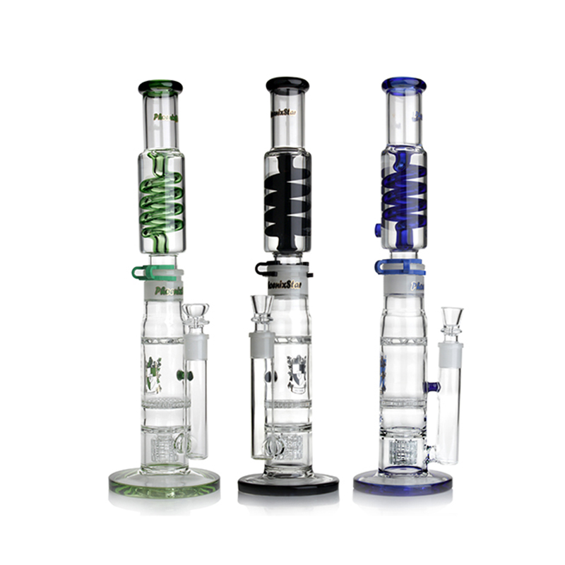 Phoenix Star Glycerin Bong with Diffuser Ball Perc & Gridded Inline Perc 18.5 InchesPhoenix Star 18 Inches Freezable Coil Bong with 4 Showerhead Percs