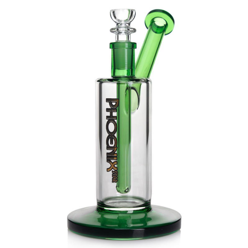 DescriptionPhoenix Star 7 Inches Bubbler With 14.4mm Joint Size PHX667 is constructed of high quality borosilicate glass with 7 inches tall, making it compact enough to take with you on the go. The 14.4mm joint size makes it compatible with most glass bowls in the market. This Phoenix bubbler is equipped with a fixed downstem with three holes to diffuse the smoke. Please put some water in the bubbler before inhaling until its holes are covered by water. Then light the dry herbs in its glass bowl, the smoke goes through the channel to be filtered to deliver a smooth and flavorful hit.