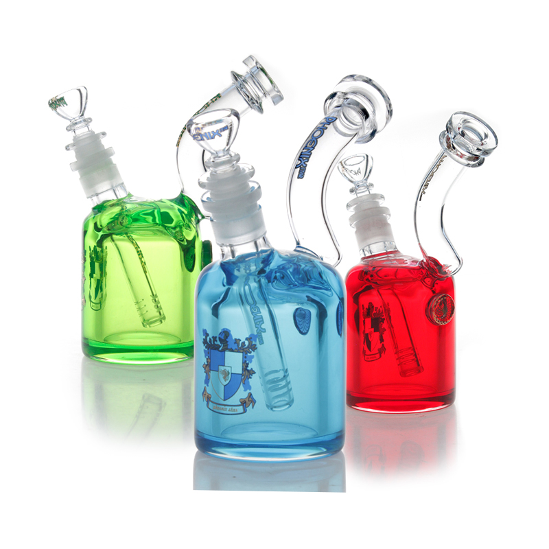 Phoenix Star 7 Inches Freezable Glycerin Glass Bong PHX561 is 7 inches tall and 5mm thick, adorned with phoenix logo. Made from high quality borosilicate glass, this unique bubbler bong has a removable diffuser downstem and a matching bowl, which is easy to handle and clean. The bubbler bong chamber is filled with freezable glycerin, so smokers will get refreshing hits every time. This gorgeous bubbler is ideal for travel use, it can be hold with one hand and put in your bag easily. Our dry herbs bubbler is available in blue, green and red colors.