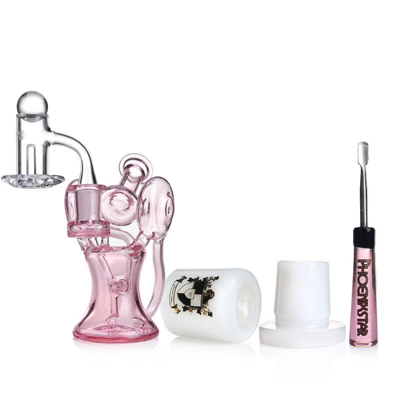 Refined Recycler Rig: At the heart of this set is an Oil Rig Recycler, featuring a Full Welded Quartz Banger for superior heat distribution and the purest taste. The recycler design ensures a cooler, smoother vapor with every use.