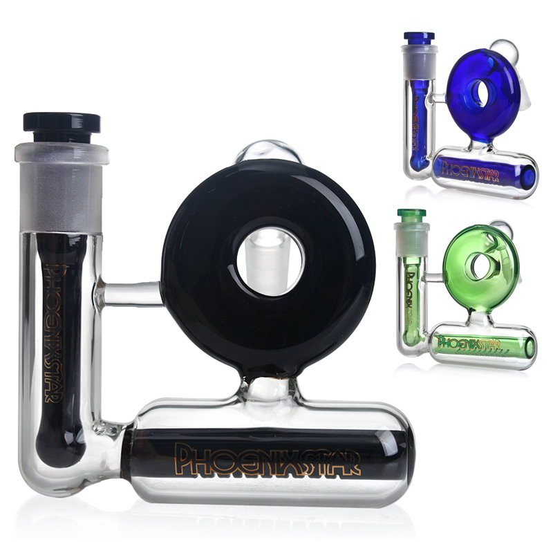 Phoenix Star Ash Catcher With Downstem & Inline Perc PHX762 is made from high-quality boros glass with a unique appearance designed to enhance your smoking experience. The sturdy design also prevents accidental breakage or damage during use or transportation. Featuring a choice of two different joint angles, 45 degrees for the 14mm joint and 90 degrees for the 18mm joint, you can choose the suitable ash catcher according to the joint of your bong. The ash catcher comes with a diffuser downstem which is compatible with 14mm bong bowls. Designed with functionality and durability in mind, the bong ash catcher is equipped with an inline perc to diffuse and filter the smoke, effectively catching ash and debris, keeping your water pipe clean and preventing it from clogging.