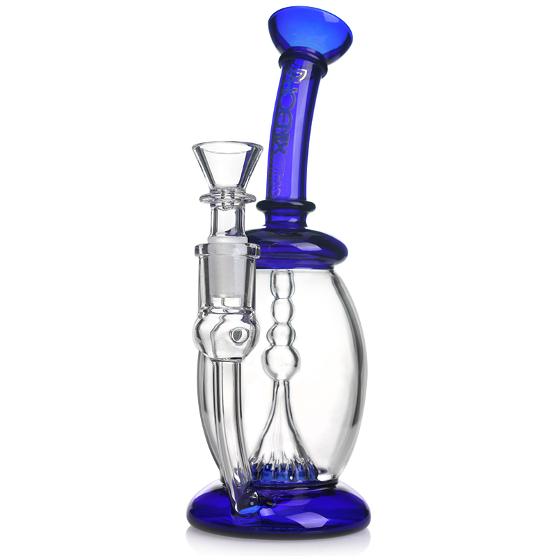 Phoenix Star Fab Egg Bubbler Piece With Showerhead Perc PHX749, made of high-quality borosilicate glass, stands at 8 inches tall with visually stunning design. This glass water bubbler bong has an egg shape design to add a touch of uniqueness to the glass bubbler. And thers are 3 small ball to connect with showerhead perc which will create a mesmerizing bubble effect as the smoke to pass through, ensuring optimal diffusion and a smooth smoking experience.
