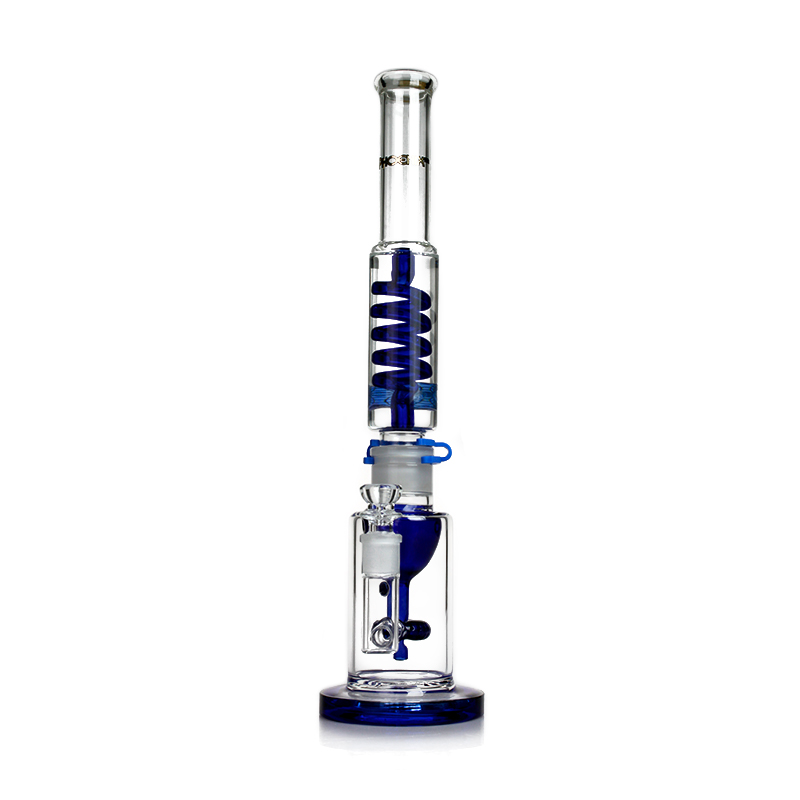 DescriptionPhoenix Star 18" Blue Glycerin Bong Recycler is crafted with 5mm thick borosilicate glass for smoking enjoyment. This blue bong features a recycler design and showerhead perc to filter the smoke to offer every stoner the smoothest and cleanest rip. Equipped with a detachable glycerin coil top part that you can put in your freezer 15-20 minutes before inhaling, this perc bong can bring you a cooler hit.
