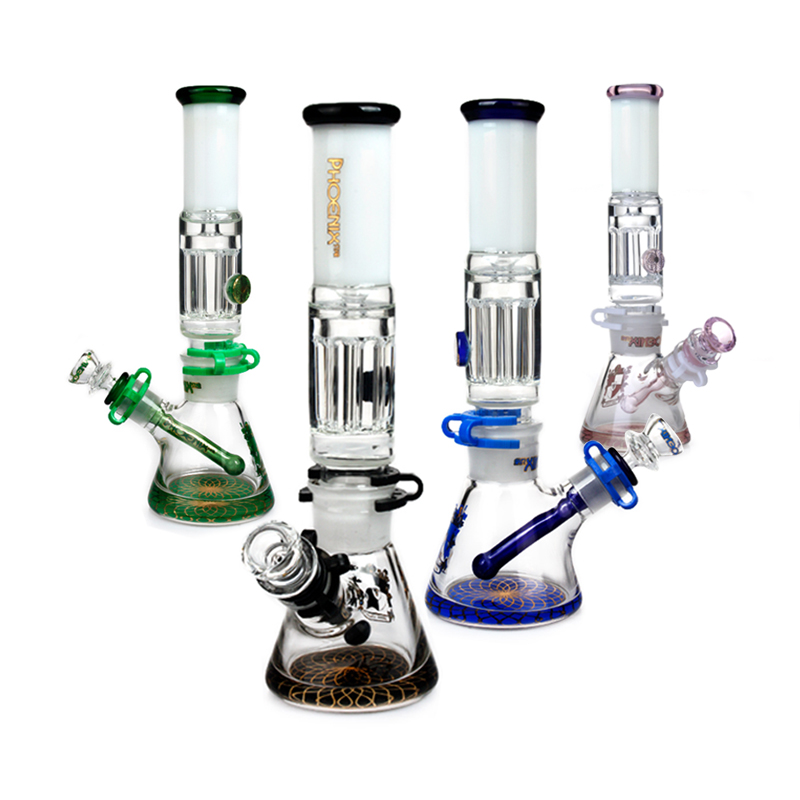 Phoenix Star 18 Inches Percolator Bong With 8 Honeycomb Percs & 2 Turbine Percs & A Showerhead Perc