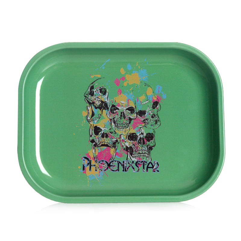 DescriptionPhoenix Star Metal Rolling Tray 7 * 5.5 inches PHX678 is designed for holding tobacco, rolling papers, filter tips, and other related smoking accessories. This smoking tray aids users in conveniently organizing and utilizing the various items needed for smoking. Each tray features a unique and vivid decal pattern.