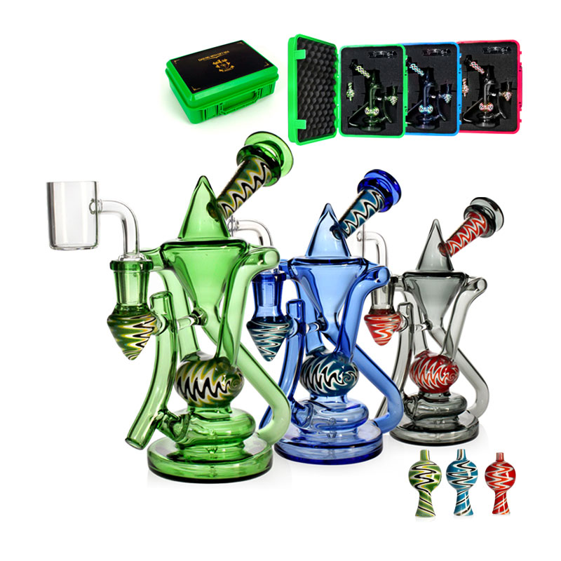 This Recycler Dab Rig Travel Kit with Carb Cap for Starters takes the beginner experience to the next level. This comprehensive 3-piece smoking set is a popular beginner kit, featuring an upgraded dual-chamber recycler rig with quartz banger and a convenient glass carb cap. Everything you need is housed in a durable and discreet Phoenix Star Travel Case, perfect for those who are always on the move.