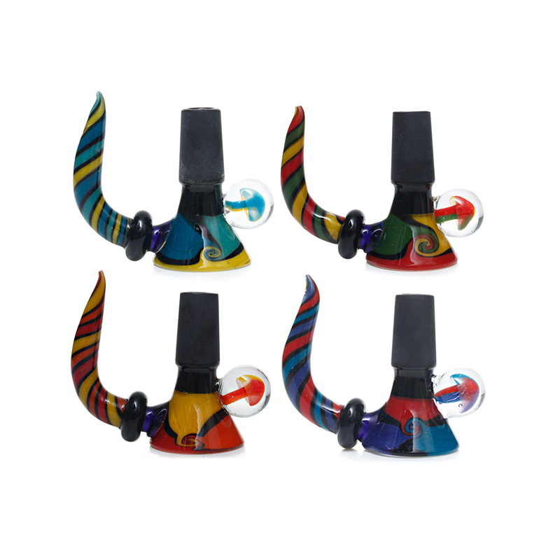 Description14mm 18mm Spiral Horn Bong Bowl is a new design by phoenix star. They are featured with a beautiful long spiral horn for easy to hold. The little mushroom marble model on the other side makes this bong bowl piece looks more lovely. These bowl pieces for bongs combine the beauty and practicality together that every stoner should have one.