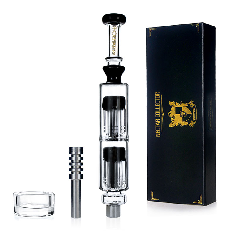 This premium 9.8-inch nectar collector kit is a complete, all-in-one solution for your on-the-go needs. It comes with a high-quality glass bubbler featuring a dual 8-arm tree perc for exceptional filtration and a smooth experience. The kit also includes a durable titanium nail and a glass wax dish, all packaged in a stylish gift box, making it the perfect choice for both personal use and as a thoughtful gift.
