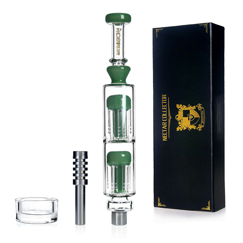 Component Details Length 10 inches Color Green Percolator Dual 8-Arm Tree Perc Nail Titanium Included Items Glass Bubbler, Titanium Nail, Glass Wax Dish Packaging Gift Box What's in the box