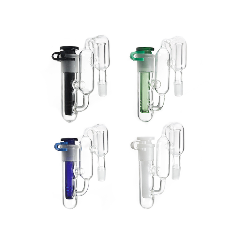 This ash catcher for bongs with downstem is available in two options: an 18mm 90-degree and a 14mm 45-degree joint, so you can match it with your favorite water pipes.